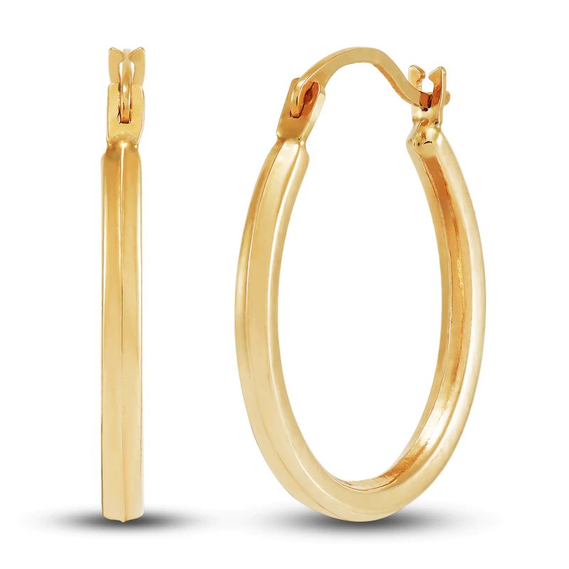 This ready-to-gift boxed set for her features three pairs of gorgeous earrings styled in iconic 10K yellow gold. The two pairs of hoop earrings, one smooth and the other embellished with intricate etching detail, secure with snap-lock backs. The stud earrings secure with friction backs.
